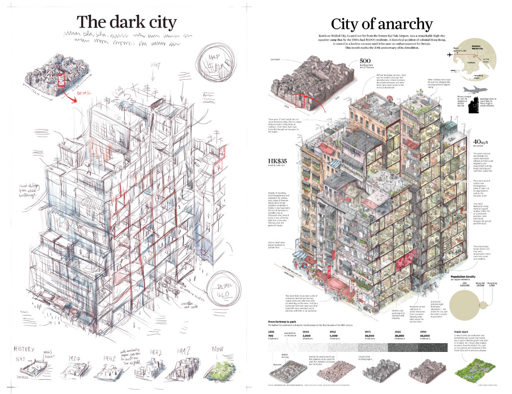In the past 25 years I haven't made many manual illustrations for my graphics. Perhaps because I was educated in the strictures and tight deadlines of newspapers, I've always preferred to use 3D software or vector programs such as Adobe Illustrator.